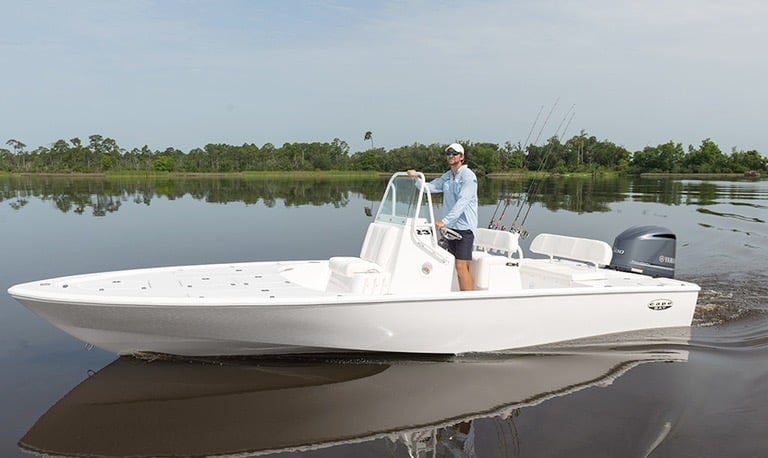 Stealth mode hull (no forward strakes) reduces hull slap and noise, ideal for sight fishing in flats.